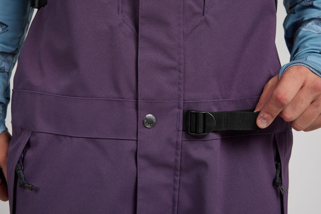 Rugged and versatile. From spring laps with a hoodie underneath, to slaying waist deep powder in full outerwear armor, the Krill Bib delivers. It utilizes durable 4-way stretch and 15K waterproof outer fabric in all panels, for maximum protection and freedom of movement. Full front chest zip has a 2-way zipper for easy pee-zy bathroom breaks, and airpill elastic shoulder straps feature soft / flexible Duraflex adjustment hardware, for maximum comfort.