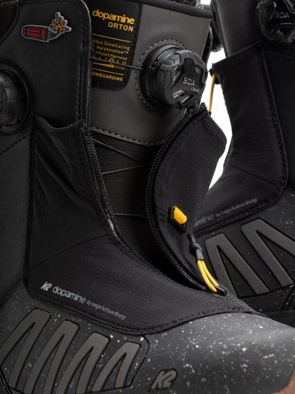 It started with an idea. Our snowboard boot scientists approached K2 Snowboarding Team Rider Sage Kotsenburg with a new concept on snowboard boot construction - and the switch flipped, it was on. A first-of-it’s-kind construction comes from a one-piece rubber lower with integrated mesh. To boil it down, this means that the Orton will not only be waterproof, but also warm and dry, all day long. The one-piece-rubber lower is married with a dual-zone BOA® lacing system, making this a versatile boot, fitting feet of all shapes and sizes.