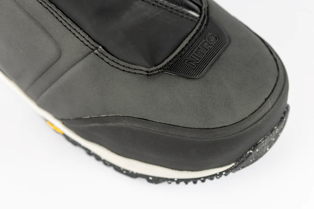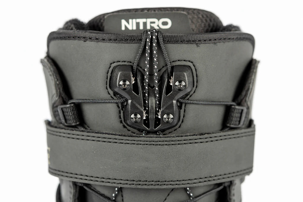 Nitro´s new gusset construction enhances protection from the elements on top of the foot to keep you dry and warm. The ergonomic diagonal zipper design allows for one-handed operation while also adding to the durability of the boot and its lacing system.