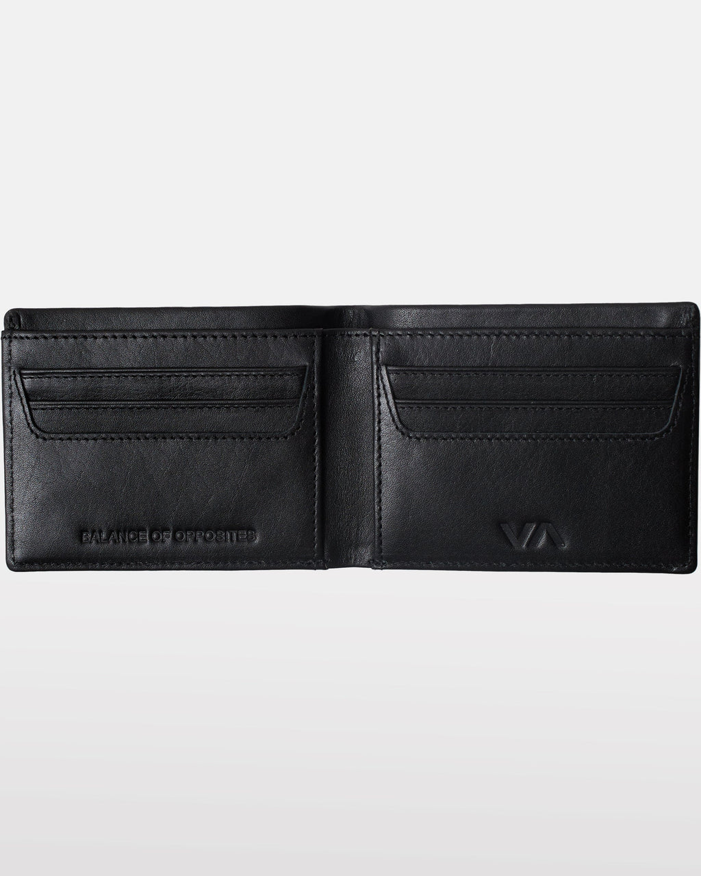 Streamlined 100% leather wallet with six internal card slots and cash pocket keeps essentials organized. Sleek, branded RVCA design delivers sophisticated minimalism.